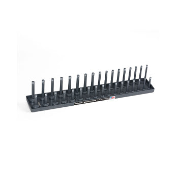 This 1/2" Drive Metric Regular & Deep Socket Holder in grey is designed for efficient organization and quick access to your sockets. It securely holds both regular and deep metric sockets, keeping your workspace tidy and tools readily available. Crafted for durability and ease of use, it is ideal for professionals seeking reliable storage that enhances workflow and tool management.