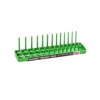 This 1/4" Drive Metric Regular & Deep Socket Holder in green is designed to keep your sockets organized and easily accessible. It securely holds both regular and deep metric sockets, streamlining your workflow and preventing loss. Its durable construction ensures long-lasting use in professional environments, while the compact design fits neatly in toolboxes or workbenches for efficient storage. Ideal for mechanics and technicians seeking precision and order in their tool sets.
