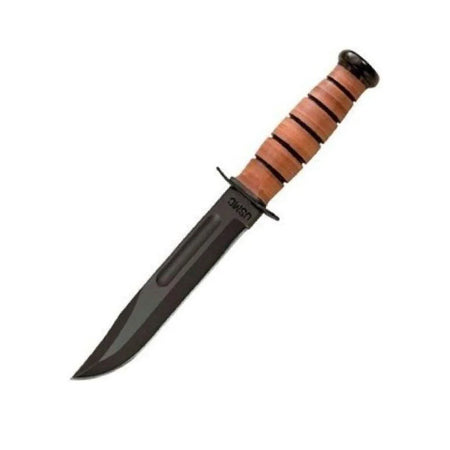 The famous "KA-BAR" USMC Fighting Clam knife is the go-to choice for troops since WWII. Made with 1095 Cro-Van steel and featuring a 20 degree edge angle, the Clip-shaped blade offers exceptional performance. Its leather handle and Mexican-made sheath add durability and functionality to this iconic knife.