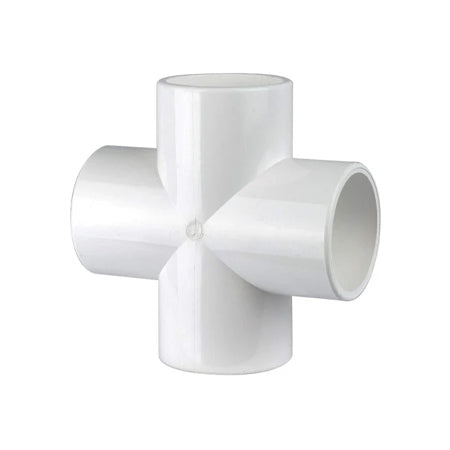 This 2" PVC Cross offers four non-threaded outlets in the same plane, perfect for wall supports or connecting pipes from different directions. Compatible with both furniture grade and standard PVC pipes, its non-marked, glossy finish adds a touch of elegance to any project. Constructed with high-quality materials, this fitting guarantees durability and ease of use.