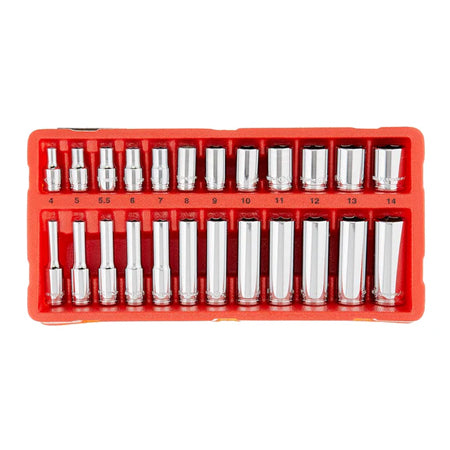 18622 Metric Socket Set, 1/4 Inch Drive, 24-Piece | Homeowner & Mechanic’s Socket Set w/ Tray | Deep & Shallow Sockets, Take on Any Job | Chrome-Vanadium Steel for Guaranteed Durability