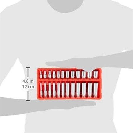 GreatNeck 18622 Metric Socket Set, 1/4 Inch Drive, 24-Piece | Homeowner & Mechanic’s Socket Set w/ Tray | Deep & Shallow Sockets, Take on Any Job | Chrome-Vanadium Steel for Guaranteed Durability