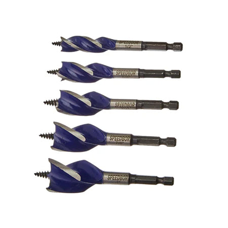 Efficiently and accurately drill through wood with the Speedbor 1877240 Irwin Tools Max Wood Drilling Bits. Crafted with precision to deliver smooth and clean cuts, these bits come in a set of five different sizes, providing versatility for any woodworking project. Save time and effort with these high-quality bits.