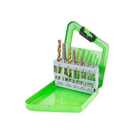 Introducing our 10-piece Bolt Extractor Set! Made with high-speed steel and bearing steel, this set includes 5 right-hand bits and 5 tapered screw extractors for easy removal of damaged bolts. Comes with a stainless steel magnetic focusing ring and a durable metal storage case. Expertly crafted for reliable use.