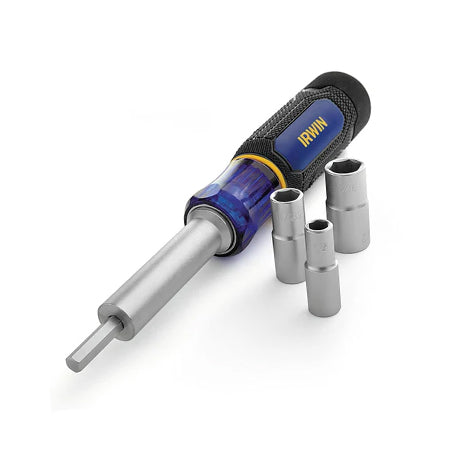 The IRWIN Tools Nut Driver with 6-in-1 Tool makes your work easier and more efficient. With commonly used nut driver bits stored in the handle, you can quickly get the job done. Its 3-Zone Comfort Grip gives you more control and torque, while the double-end driver bits in various sizes make it a must-have for any garage or toolbox.
