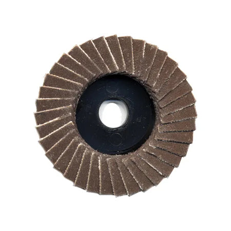 This 2" flap wheel is designed for precise surface finishing and blending applications. Its abrasive grit construction ensures efficient material removal while maintaining control, making it ideal for smoothing welds, deburring, and preparing surfaces for painting or coating. Compact and durable, it offers consistent performance in tight spaces and on curved surfaces, providing a professional-grade finish for metalworking and