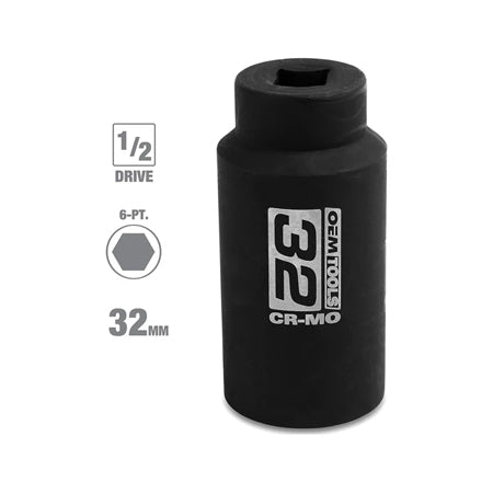 Efficiently remove and install front drive hub/axle nuts with OEMTOOLS 25204 32mm Axle Nut Socket. Its 1/2 inch drive fits both 4-wheel drive and many front-wheel drive vehicles. Rust-resistant for long-lasting use. A must-have for automotive rebuilds.