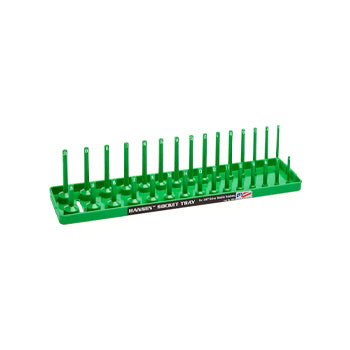 Keep your 3/8" drive metric sockets organized with this durable green holder, designed to securely store both regular and deep sockets. Its sturdy construction ensures easy transport and quick access, enhancing efficiency in any professional or DIY workspace. The clear layout helps maintain order and protects your sockets from damage.