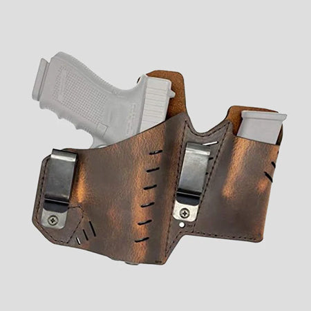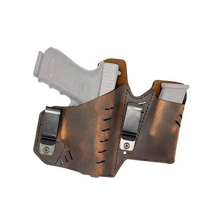 Expertly designed for concealed carry, the Versacarry 32112 Element Holster offers an adjustable cant and built-in spare mag carrier for added convenience. Its inside the waistband design allows for discreet and comfortable wear, while the stylish brown finish adds a touch of sophistication. Available in size 2.