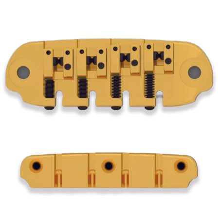 The D Style bridge is your solution for sleek, versatile two post goodness. Easily adjust the bridge height to accommodate any neck angle and lock it securely in place. Need a minimalist bridge for your through body build or a sleek tailpiece for your own bridge design? Order the bridge and tailpiece separately for even greater flexibility. Best of all, the D Style’s solid machined brass construction will give you a lifetime of trouble-free playability.