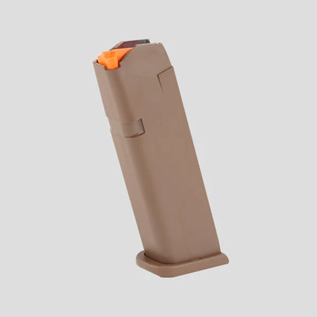 This Glock factory magazine is constructed from a hardened steel insert encased in high tech polymer to protect the magazine and prevent deformation, even when dropped from a great height. The high quality spring and orange, high visibility follower ensure reliable feeding from the first to the last shot. Compatible with Airsoft Glock 17, 19X, 34 and 45 handgun models. Airsoft Glock Gen 5 magazines are also compatible with Gen 1-4 Glock pistols.