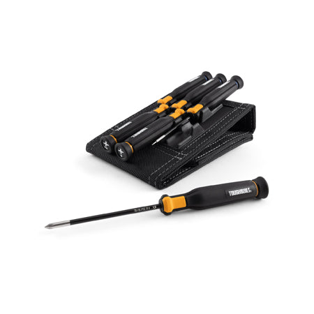 This 6-piece precision screwdriver set offers expertly crafted tools designed for delicate and detailed work. Each screwdriver features finely machined tips for accurate fit and control, ideal for electronics, watches, and small mechanical repairs. The ergonomic handles provide comfort and reduce hand fatigue during extended use, ensuring precision and reliability in every task. Perfect for professionals and hobbyists requiring dependable, high-quality screwdrivers for intricate projects.