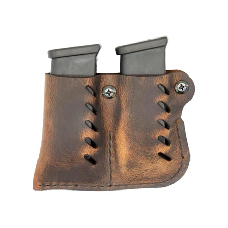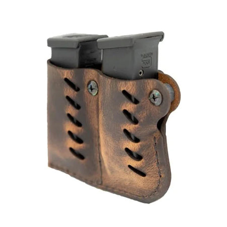 Leather Double Magazine Carrier - Adjustable - Double Stack- Brown