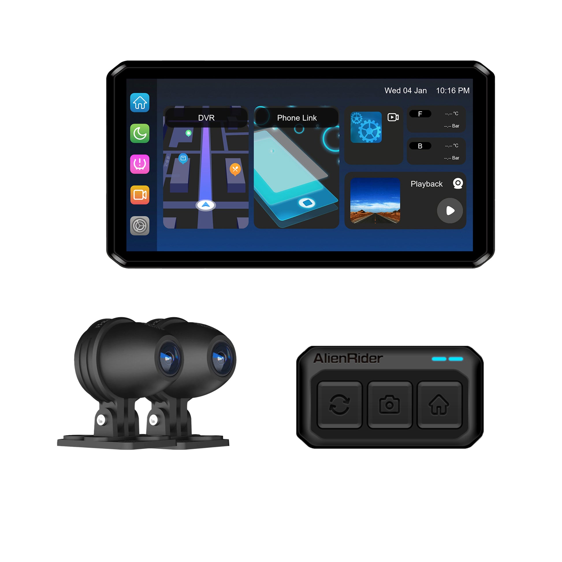 The AlienRider M2-QR-BMW Smart Infotainment System with front and rear dual cameras provides a complete, reliable upgrade for BMW motorcycles. It delivers high-quality video capture from both angles, helping riders monitor their surroundings for safer and more informed journeys. Designed for seamless integration and intuitive operation, it enhances connectivity, navigation, and overall riding experience, giving riders confidence and convenience on every ride.