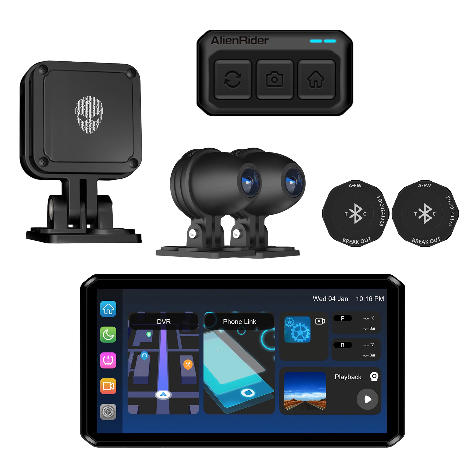 The AlienRider M2QR-BMW Premium Smart Infotainment System with TPMS, dual cameras, and optional radar or GPS offers a feature-rich, reliable upgrade for BMW motorcycles. It provides high-quality front and rear video capture, real-time tire pressure monitoring, and advanced navigation or radar options for safer, more informed rides. Designed for seamless integration and easy operation, it enhances connectivity, convenience, and confidence on every journey.