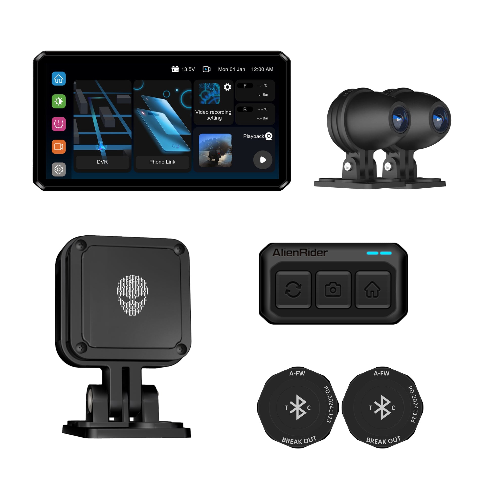 AlienRider M2S-QR-BMW Smart Motorcycle Infotainment System Kit w/ Dual Cameras & Remote