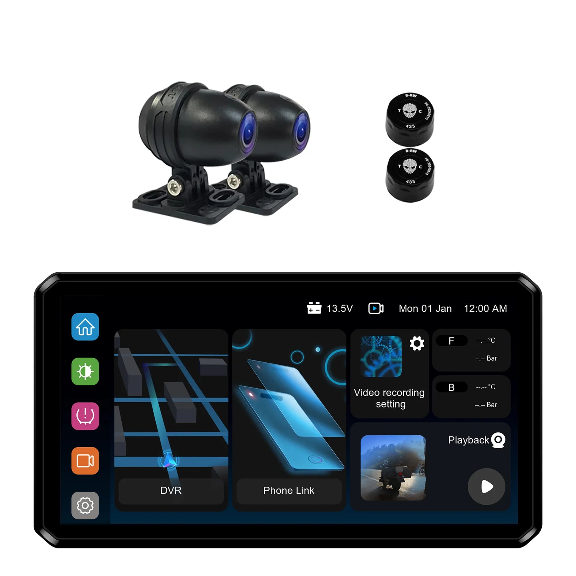 The AlienRider M2S Smart System Host with TPMS and 1080P streaming dual cameras offers a complete upgrade for motorcycle riders. It provides real-time tire pressure monitoring, high-definition front and rear video streaming, and a user-friendly interface for easy operation. Designed for seamless integration and reliable performance, this system enhances safety, connectivity, and ride awareness, helping riders enjoy smarter, more confident, and informed journeys.