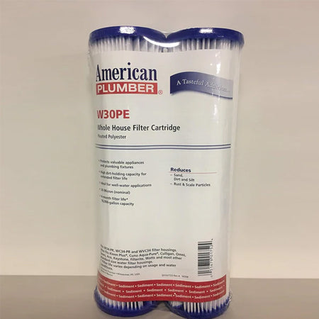 Upgrade your home's water filtration system with the American Plumber W30PE Whole House Sediment Filter Cartridge 2-Pack. These expertly designed cartridges effectively remove impurities and sediments, providing cleaner and safer drinking water. Trust in the quality and expertise of the American Plumber brand for a healthier home.