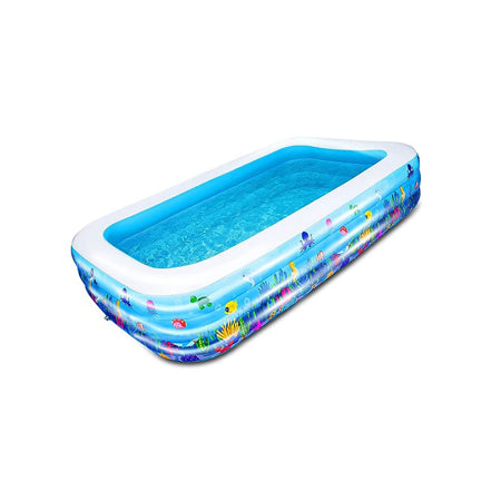 - LARGE, FAMILY SIZE: There is room for kids to play and relax. Sturdy and spacious, inflatable pool is 100"x 66"x 23". Plenty of room for family and friends to enjoy the pool party in the backyard. Fun for both indoor and outdoor use.