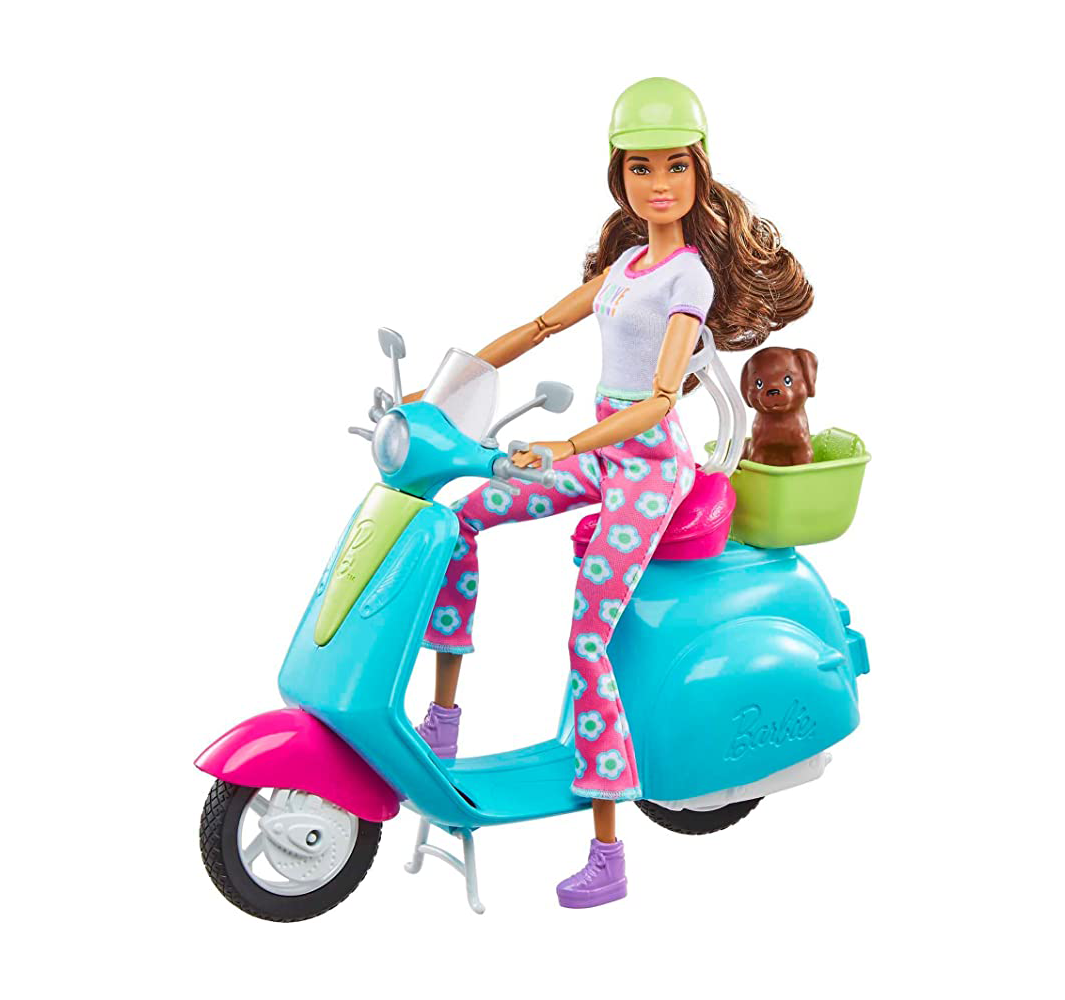 Barbie Fashionistas Doll and Scooter Travel Playset with Pet Puppy and Themed Accessories