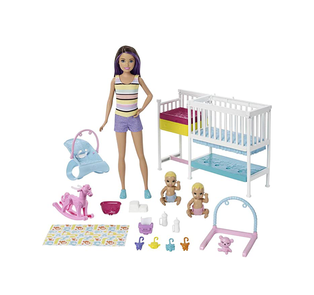Barbie Skipper Babysitters Inc. dolls and toys let kids explore their nurturing side as the babysitter. Skipper doll's Nap 'n' Nurture Nursery playset encourages imaginations to take charge, helping Skipper doll care for two adorable baby dolls.