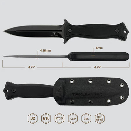 This Tactical Knife is a versatile and essential addition to your camping and hunting gear. It features a D2 Spear Point Blade for precision and durability, and a G10 Handle for a secure grip. With a Kydex Sheath and Molle Clip, it's easy to carry on any adventure. Don't leave home without it!