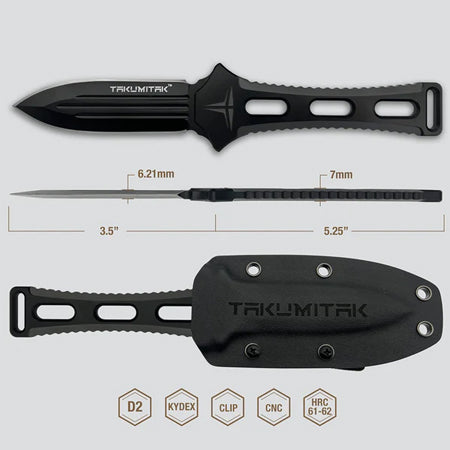 The Tactical Knife Hunting Knife is designed for ultimate survival and outdoor adventures. With a D2 spear point blade and full tang construction, it delivers superior cutting performance and durability. Equipped with a Kydex sheath and Molle clip, it fits easily into any camping or survival kit. Perfect for tactical gear enthusiasts and hunters alike.