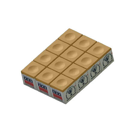 - This pack of 12 American-made beige pool cue chalk sticks comes in a khaki-colored box, providing the perfect color match for tan felt. Suitable for both home and commercial use, this chalk is a must-have for any serious player.