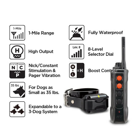 The Dogtra EDGE RT High Output 1-Mile IPX9K Waterproof 3-Dog Expandable E-Collar is designed for the ultimate training experience, providing professional trainers and serious dog enthusiasts with top-tier performance. Offering a 1-mile range and the capability to manage up to three dogs simultaneously, it is ideal for obedience training, hunting, and K-9 work. The high output ensures effective stimulation across a wide range of levels, suitable for dogs of varying temperaments. With an IPX9K waterproof rating, the EDGE RT is built to withstand the harshest conditions, ensuring durability and reliability. The ergonomic design, combined with user-friendly features, makes it a powerful tool for effective and efficient dog training.
