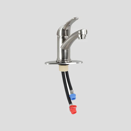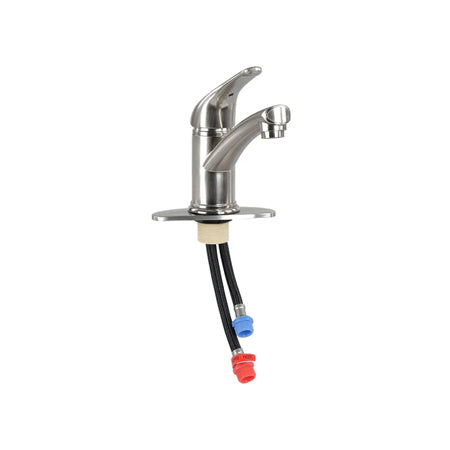 - This 9in Brushed Nickel Single Lever Bathroom Faucet features easy installation with red and blue attachments on hoses for simple identification. The included hoses allow for 1 or 3 hole mounts with a simple screw-in design to the surface of your countertop. Enjoy a quick and hassle-free installation process.