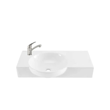 - This 9in single lever bathroom faucet is designed for a luxurious yet practical experience. Its non-metallic construction ensures your faucet won't rust, and the included 5.5-inch ceramic cartridge deckplate provides additional support. The single lever spout design produces water at a consistent 60PSI.