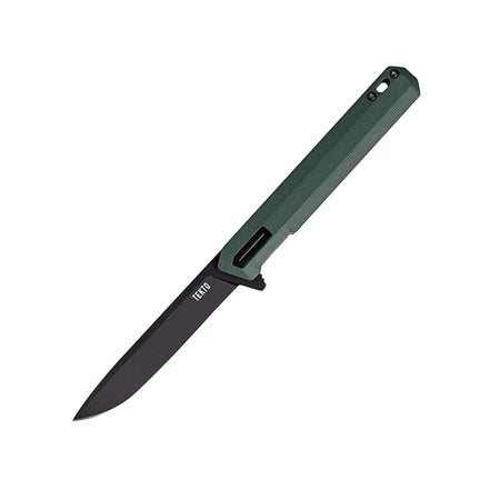 F2 Bravo Folding Knife, Titanium Coated D2 Steel, Black Drop Point Fine Edge Blade