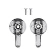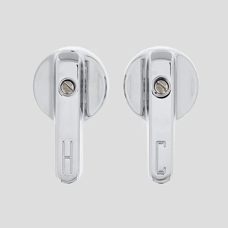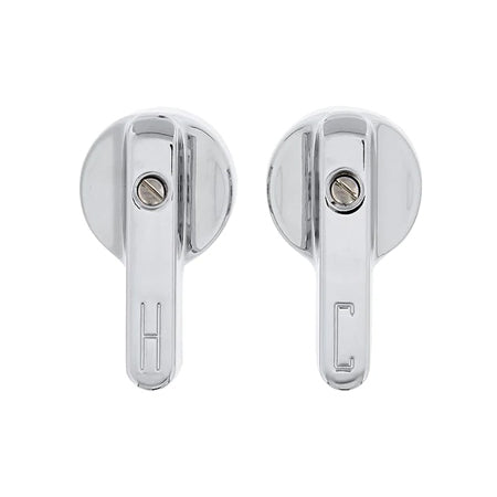 - The package contains two chrome-plated faucet handles; dimensions measure 2.5 x 1.4 x 1-inches, complete with two fastener screws.