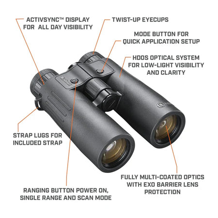 Introducing the Bushnell Fusion X 10X42mm Ranging Binocular, combining superb ranging accuracy and advanced optics. Experience optimum viewing clarity with the HDOS- High-Definition Optical System and never struggle to read ranging readouts again with the unique ActivSync Display. Take your observations to the next level with the FX1042AD.