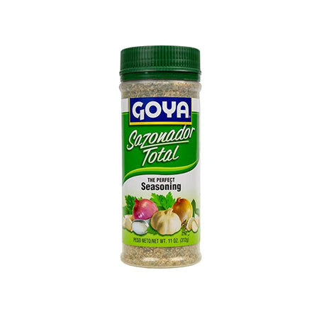 - This versatile seasoning mix includes the perfect blend of Latino spices that makes your meal extra special. We’re sure you’ll love it. GOYA Sazonador Total is the perfect blend of garlic, onion and Latin spices that adds quick flavor to any meat, chicken, fish and vegetables.