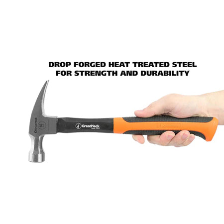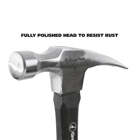 GreatNeck HG16S 16 Oz. Fiberglass Straight Claw Hammer, Carpenter & Contractor Tool for Framing, Building, & Ripping Nails, Durable Drop Forged Steel Hammer