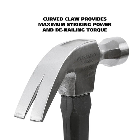 This fiberglass curved claw hammer is built to last, with a steel construction and fully polished head to resist rusting. The contoured, slip-resistant rubber grip handle provides a secure and comfortable hold during use. Plus, it's protected by the GreatNeck Limited Lifetime warranty for peace of mind.