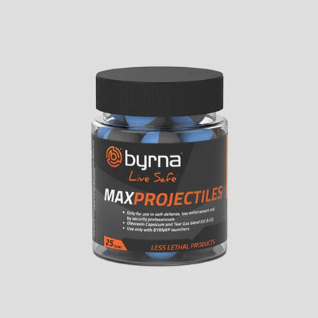 Our most powerful proprietary pepper and tear gas blend: OC, CS all in one shot, with quick-acting incapacitating effects, higher dispersion, and higher concentration of chemical irritants than any other round found on the market today, our Byrna Max projectiles are designed for maximum stopping power.
