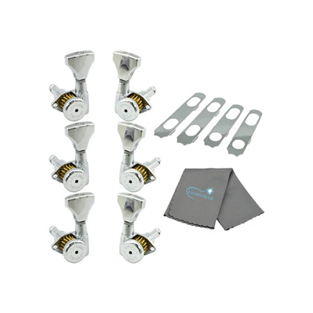 Hipshot Guitar Tuner Upgrade Kit (3+3 Headstocks) Chrome Grip-Lock Open Bundle with a Lumintrail Polishing Cloth