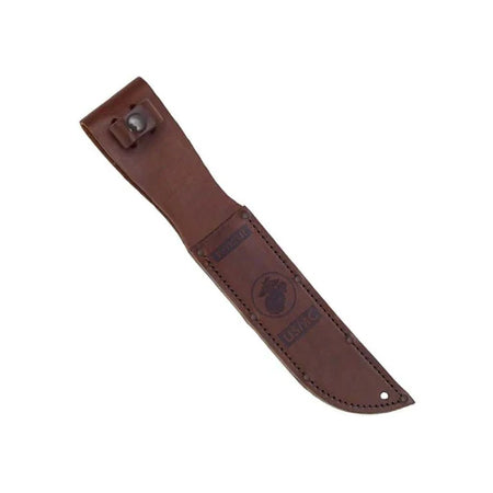 The BRK USMC Fighter Serrated stands as an iconic fixed-blade knife, meticulously crafted with 1095 Cro-van steel and boasting a 7" serrated-edge blade. Manufactured in the USA and complemented by a leather sheath from Mexico, this knife is an essential tool for any enthusiastic outdoorsman. Rely on its esteemed design and exceptional quality to meet all your cutting and slicing requirements.