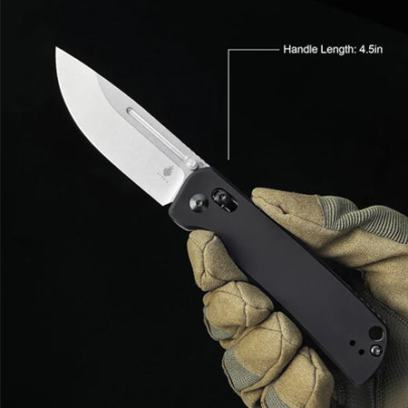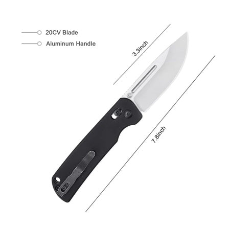 - Expertly crafted for outdoor adventures, the Pocket Knife features a durable 20CV steel blade with a 3.31" length and 0.11" thickness for optimal cutting and slicing power. Its lightweight aluminum handle and overall length of 7.80" make it the perfect tool to take on any journey. Weighing just 4.23oz, it won't weigh you down.