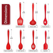 - slotted spoon, solid spoon, soup ladle, pasta server, large spatula, spoon spatula, Common kitchenware set could meet your needs, like serving,cooking, scraping, frying, mixing, Red set could match your existing red furniture and decorate your kitchen, To be a good gift choice