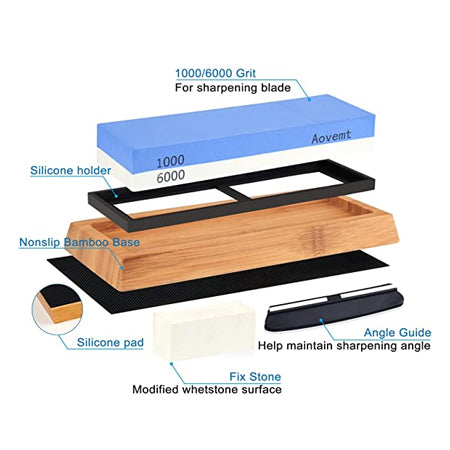 Knife Sharpening Stone,Aovemt Premium Knife Sharpening Kit 2 Side Grit 1000/6000