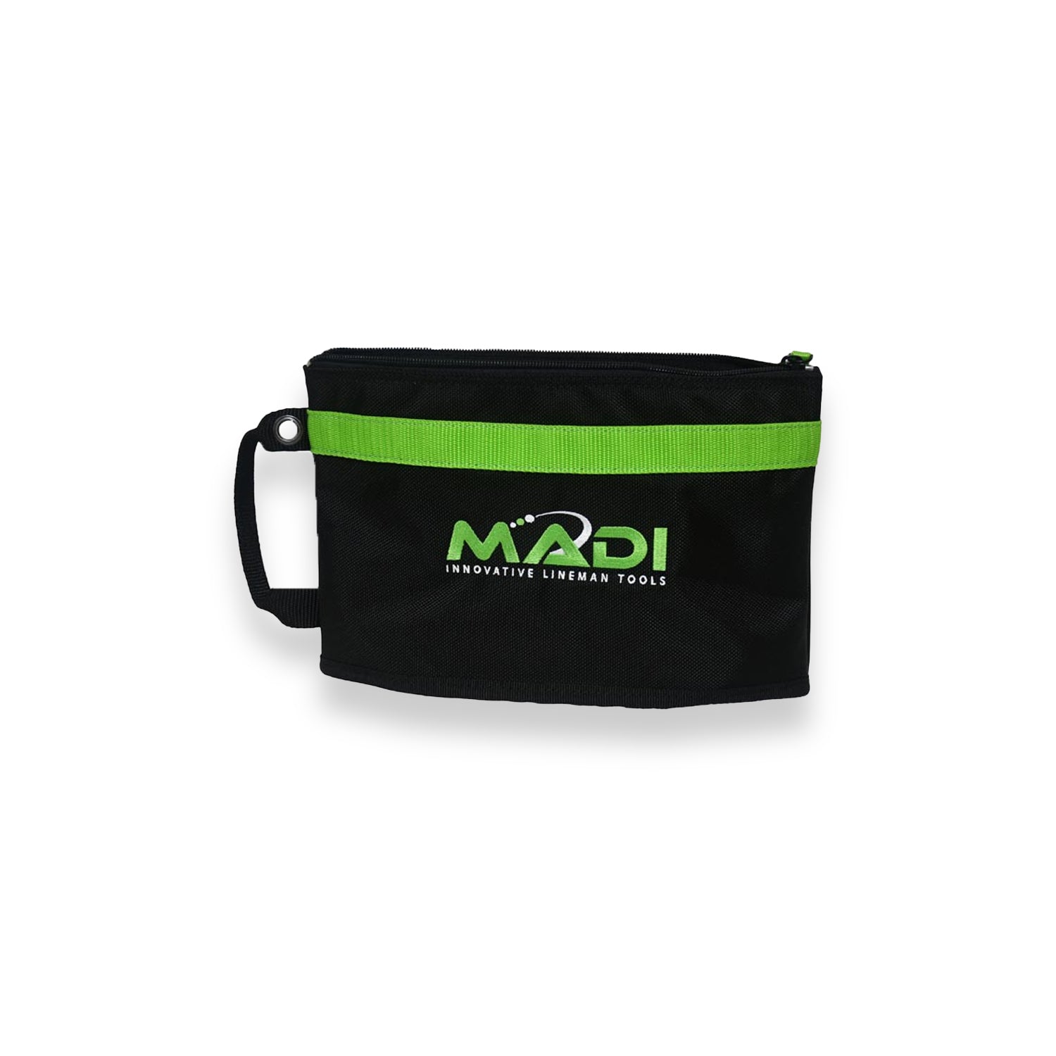 MADI Lineman Stand-Up Pouch (LP-1) Organize your essential gear with the MADI LP-1. Made from heavy-duty 1680D Ballistic Nylon, this pouch is 100% water-resistant and puncture-resistant up to 80 lbs. The unique stand-up bottom provides easy access to sockets, PPE, and small tools. It features a secure transport handle and a carabiner hole for effortless attachment to larger gear bags. Measuring 11 ¾” x 7 ½” x 3 ½”, it is the durable, professional solution for keeping jobsite essentials secure and accessible. Catalog #LP-1.