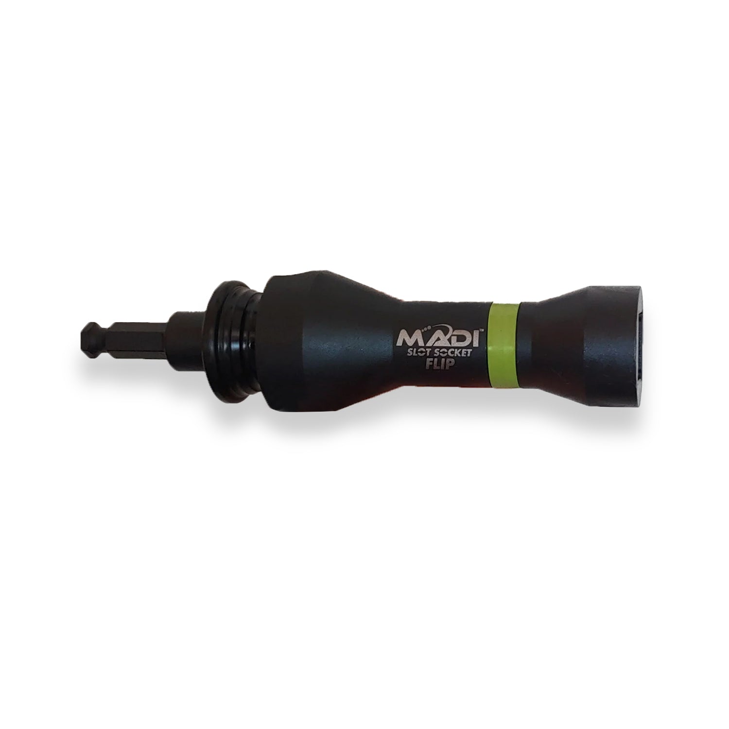 The MADI SS-7DE is an impact-rated socket designed to be 40% more compact than standard models for better maneuverability. It features three square openings to fit 1/2”, 5/8”, and 3/4” hardware (3/4”, 1”, and 1-1/8” sizes). This single-slotted tool is ideal for T-clamps, eye nuts, and J-hooks. It includes a secure-lock quick-change adapter to prevent accidental disconnects and is fully glove-friendly. Perfect for professional utility and pole-line applications. Catalog #SS-7DE.