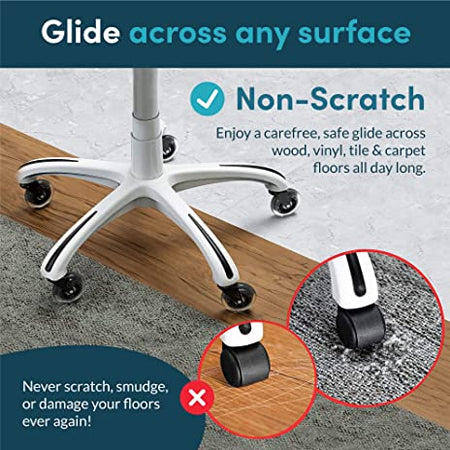 - SMOOTH GLIDING IS AS QUIET AS A MOUSE – A squeaky, rickety office chair wheel is a telltale sign that they’re cheap and poorly made. You’ll slide and glide around in total silence with our swivel casters