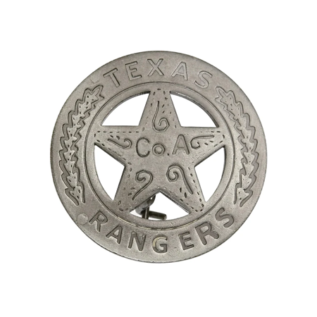 Become a Texas Ranger with this authentic replica badge from Denix. Plated in antique grey finish, this cast badge showcases one of the most popular styles from the old west. Securely fasten it to your attire with the locking back pin. Add a historic touch to your collection.