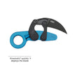 Introducing the Provoke Blue Metallic: Morphing Karambit with a unique innovation - Kinematic deployment at the push of your thumb. Featuring a high carbon stainless steel blade for easy sharpening and a durable black stonewash finish. The impact resistant injection molded handle and low profile pocket clip make it simple and tough for secure carry.