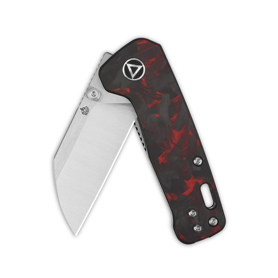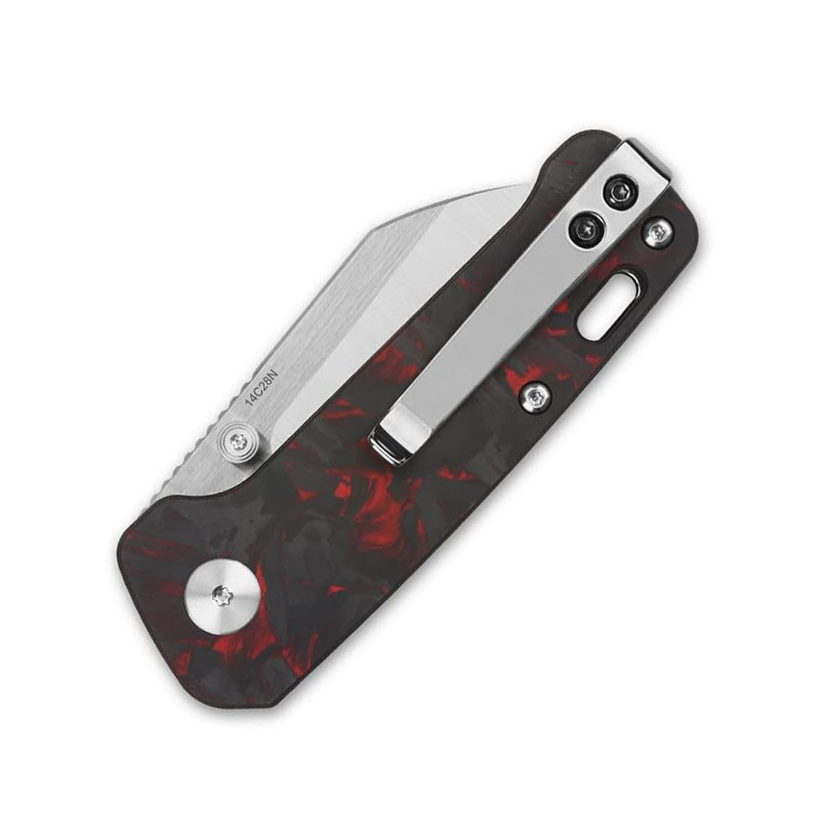 QSP KNIFE MINI PENGUIN POCKET KNIFE, 14C28N blade with variants handle scales, small size for everyday carry (satin blade,shredded CF overlay G10(red))