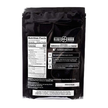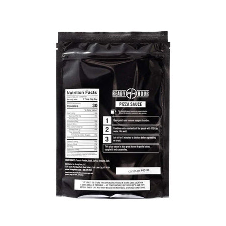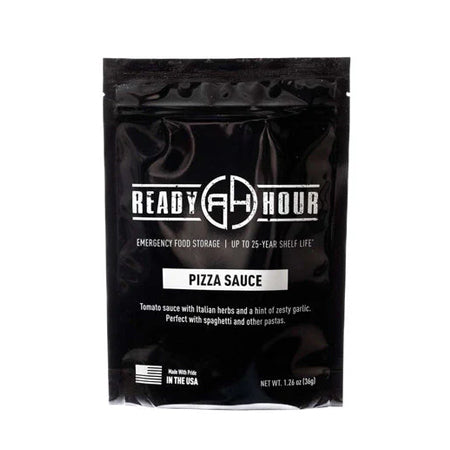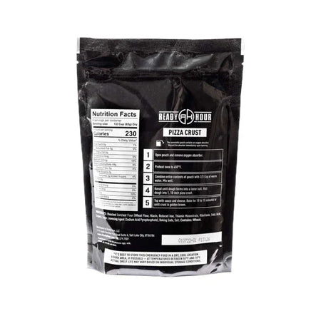 - Includes 6 pouches each (18 total pouches) of Ready Hour Pizza Crust, Ready Hour Pizza Sauce, and Ready Hour Freeze-Dried Shredded Mozzarella Cheese.